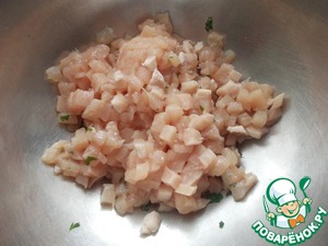 Грудку мелко измельчить ножом, легче это делать, если птица слегка подморожена.