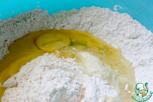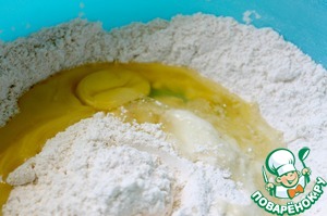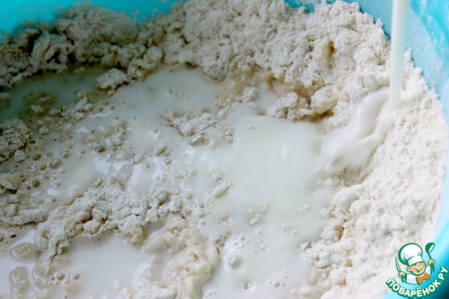 Первым делом тщательно перемешайте все сухие ингредиенты.