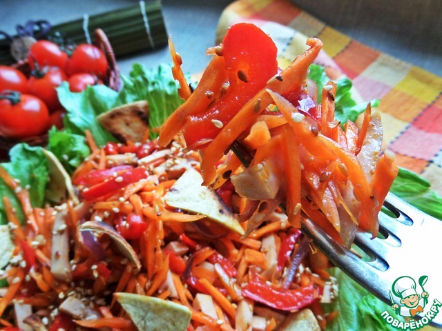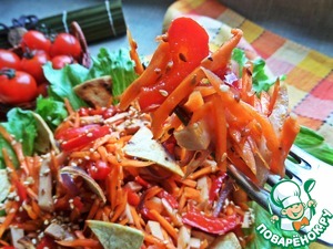 Берём готовую корейскую морковку или делаем сами! Добавим немного ветчины или колбасы... и хрустим вместе с самодельными чипсами!