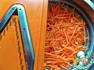 Шинкуем морковь на специальной тёрке или просто на крупной обычной.