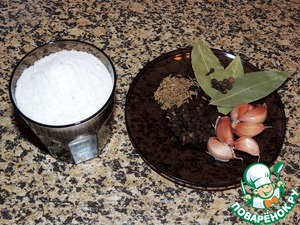 Приготовить рассол: в кипящую воду добавить соль, нарезанные 4 зубчика чеснока, перец, зиру, лавровый лист и проварить 5 минут.