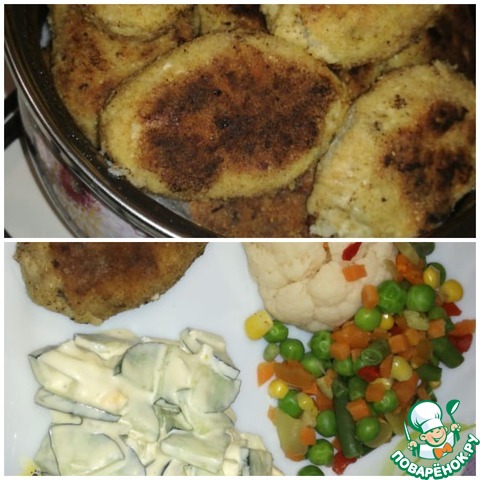 был уже фарш из грудки - на пару в мультиварке довела его до готовности, а дальше - по рецепту.