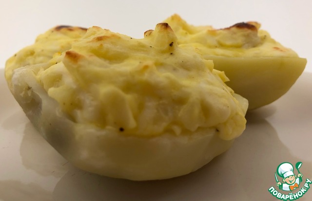 • Наполняем картофель этим фаршем, посыпаем тертым сыром и запекаем в духовке (10-15 минут).