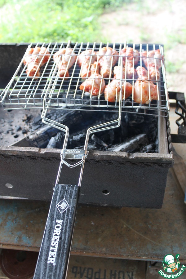 • Куриные ножки сложить на решетку-барбекю ТМ FORESTER, жарить до готовности часто переворачивая. Подавать сразу же с любимым соусом! Приятного аппетита!