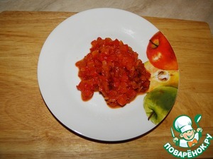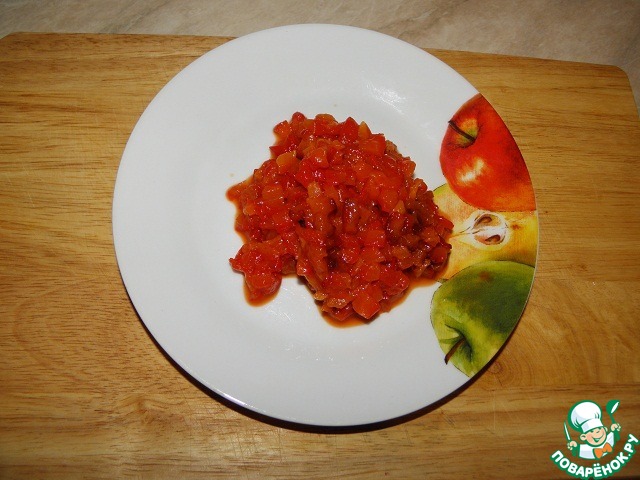 Снять с перца кожицу, и нарезать мелкими кубиками
