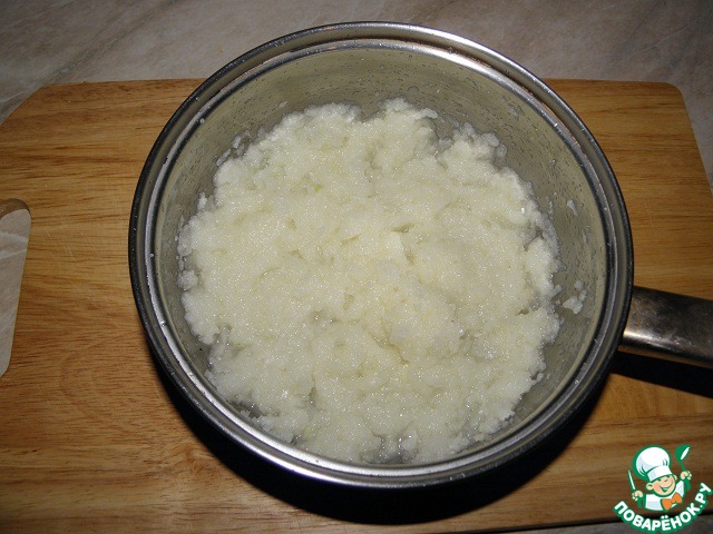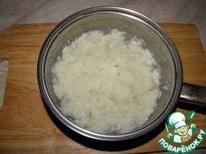 Лук пропускаем через мясорубку, или соковыжималку, или блендер. Нам нужен сок и кашица.