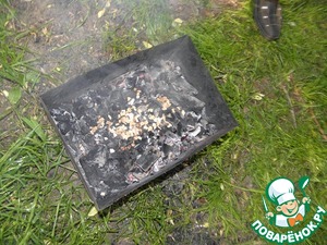 За 25 минут до готовности курицы, на угли, для аромата, разбросать влажную щепу от FORESTER (предварительно ее нужно замочить в пакете, минут на 30)