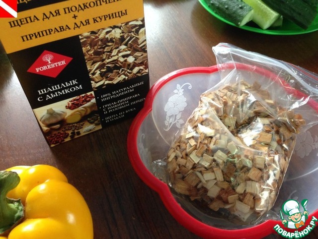 Щепу (бук и ольха) для подкопчения ТМ Forester замочить на 30 минут в пакете. Использование щепы придаст блюду аппетитный золотистый цвет и тонкий аромат копчения.