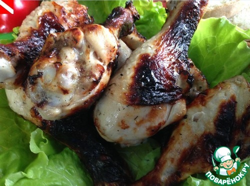 Куриные голени уложить в маринад, перемешать продукты, чтобы маринад распределился равномерно, накрыть пищевой пленкой и убрать минимум на 30 минут в холодильник. Снимать шкурку или нет, это вопрос индивидуальных предпочтений. Я оставлю, так как именно она не дает мясу пересушиваться.