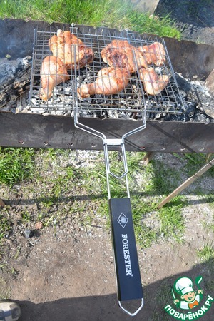 Готовить на такой решетке - одно удовольствие! Готовьте курицу, переворачивая решетку до румяности на углях -