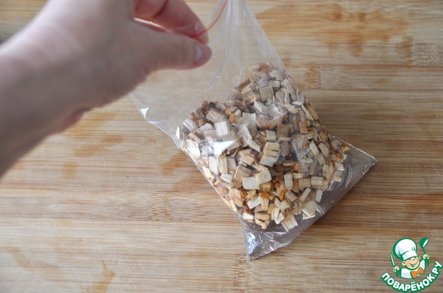 Заранее (не менее, чем за 30 минут) замачиваем щепу.