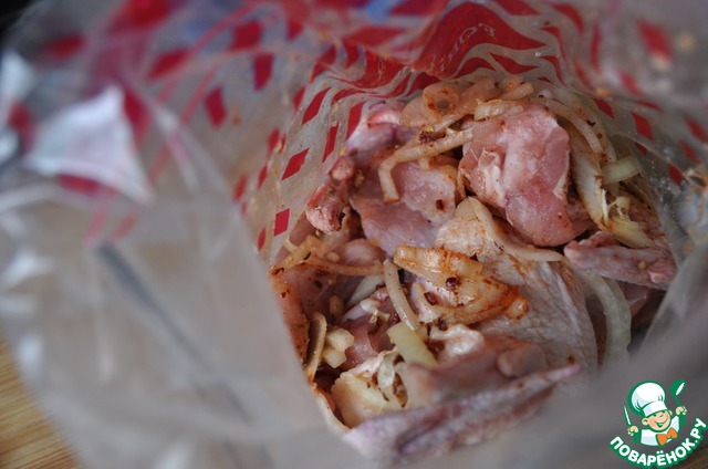 Всё хорошо перемешиваем, для удобства кладём в пакет и оставляем мариноваться на 2-3 часа.