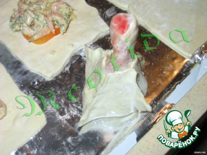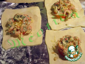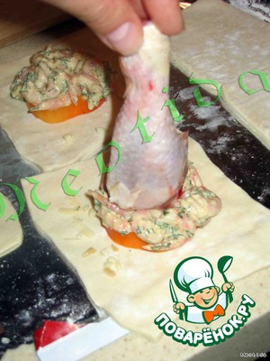 Сочные... ароматные... яркие... пикантные, запеченные в духовке куриные ножки... Нежнейшее куриное мясо, пропитанное ароматными специями... Немного креветок, сыра и сладкого стручкового перчика для сочности... Хрен, чесночок и перчик для яркости вкуса... Укропчик для свежести... И, конечно, все это необходимо обернуть в слоеное тесто, чтобы ни капли сока не упустить и пропитать всеми пьянящими запахами и вкусами тесто... Это блюдо и на праздничный стол.. , и для наших самых близких и любимых...