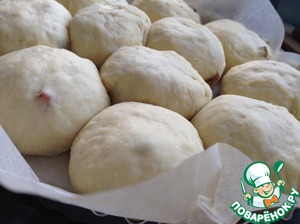 Затем тесто обмять, разделить 10-12 частей и сформировать булочки.