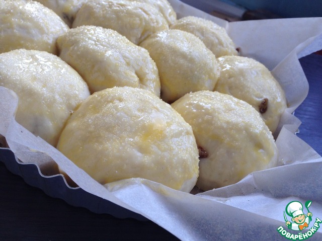 Сдобные, воздушные, ароматные, да еще и с изюмом. Очень вкусные булочки для утреннего чаепития!!! А ещё они мне напомнили ванильные булочки, которые были раньше по 9 копеек!:)