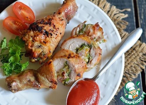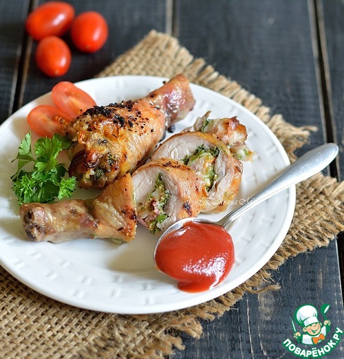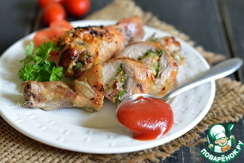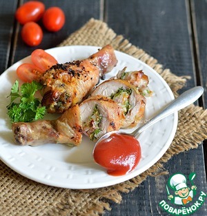 Рецепт «Куриные голени, фаршированные сыром и беконом»:
