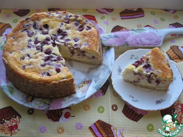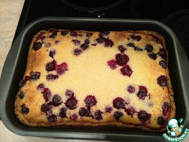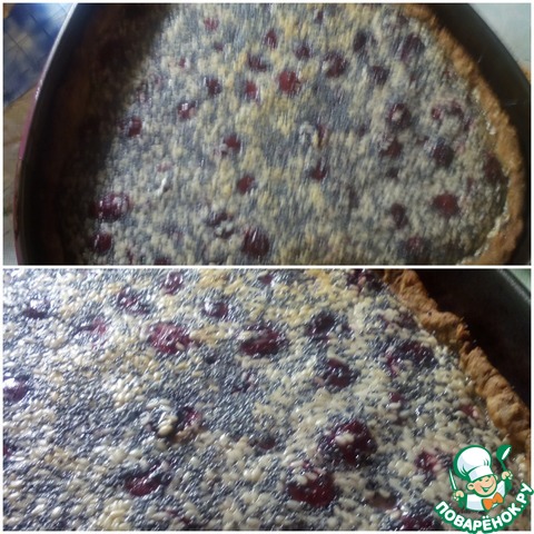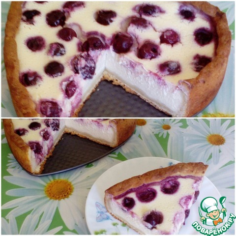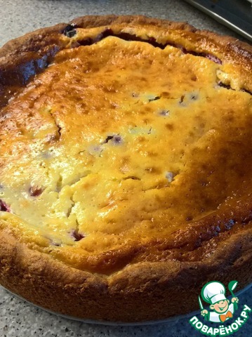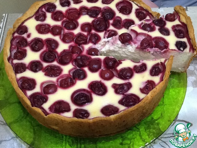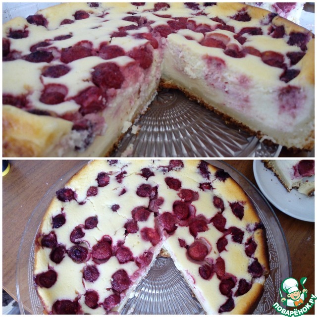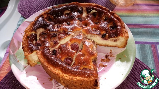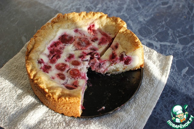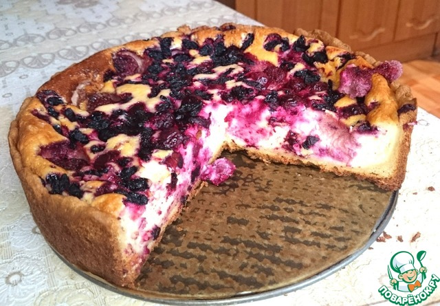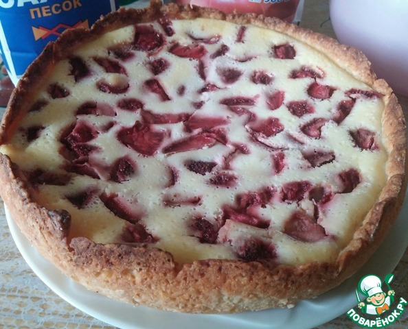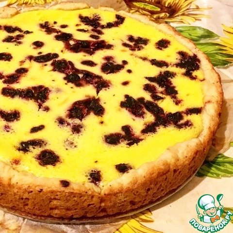 Выливаем заливку на тесто и опускаем в заливку ягоды