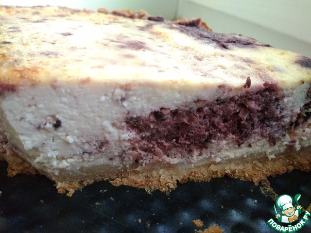 А вот кусочек со свежей ежевикой - он гораздо плотнее - пекла в форме на 23
