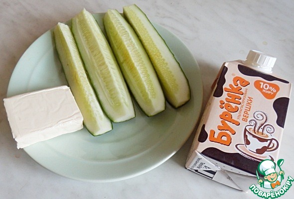 С помощью блендера измельчить в пюре огурцы, сыр, сливки. После добавить молотый перец и соль, еще раз хорошо перемешать.