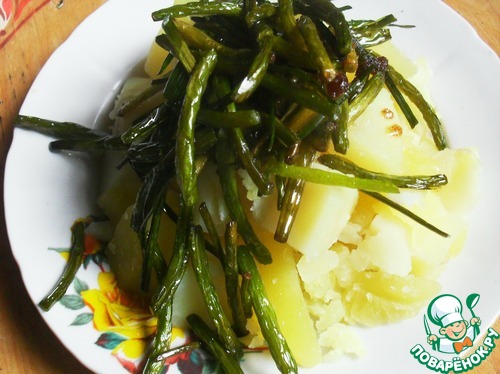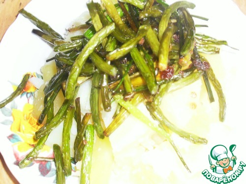 Есть похожие рецепты с чесночными стрелками... Но у меня все до безобразия просто, но тем не менее вкусно. Муж так присел на эти стрелки, что сказал:"В следующем году засадим чесноком две сотки!"