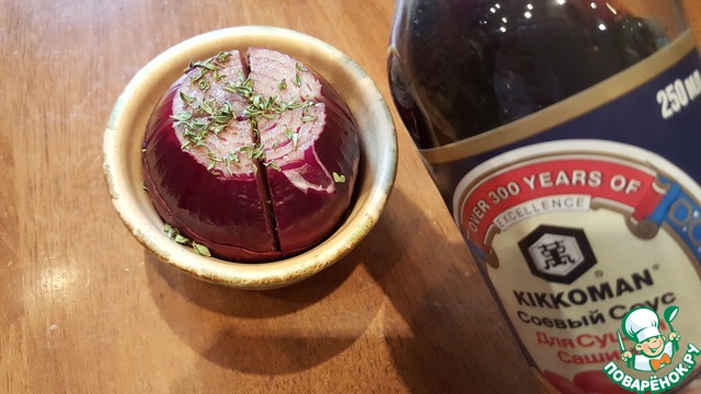 Рецепт «Красный лук, запечённый в соевом соусе»: