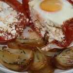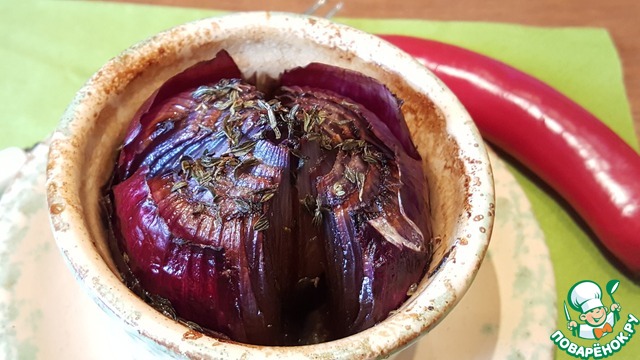 Красный лук, запечённый в соевом соусе
