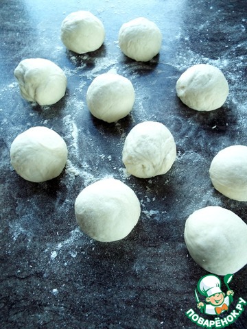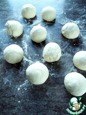 Тесто разделить на кусочки весом по 40 г. Скатать шарики, накрыть и оставить на 5 минут.