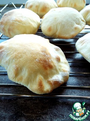 Быстро переложить лепешки на противень. Выпекать 5-7 минут. Лепешки вздуются и зарумянятся, можно доставать. Остудить на решетке.