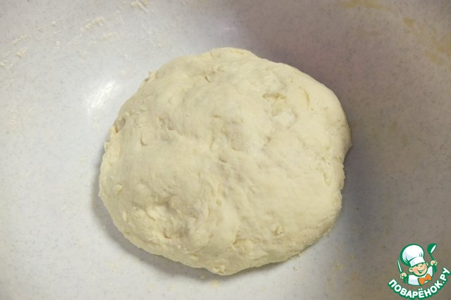 • Добавляем вторую часть сыворотки и замешиваем тесто. Оставляем тесто в покое на 10-15 минут.