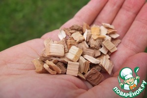 • Щепу для подкопчения Форестер замачиваем в воде, как написано в инструкции. Бросаем на угли.