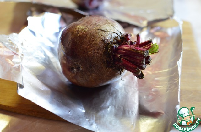 Свеклу вымыть и запечь в фольге в духовом шкафу около 1 часа. -
