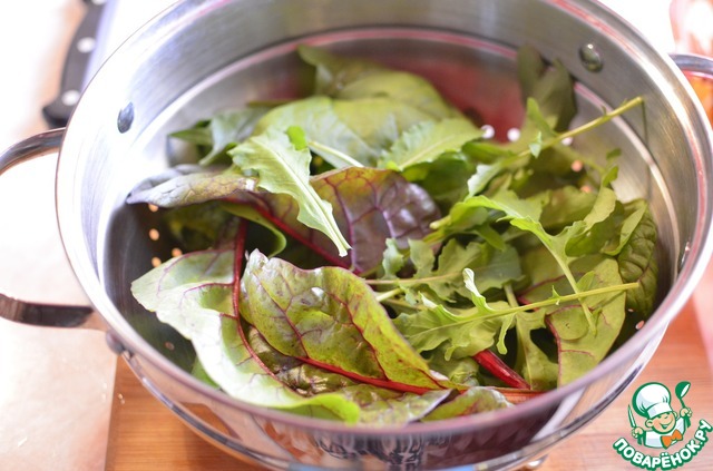 Шпинат, рукколу и листовую свеклу промыть, высушить.