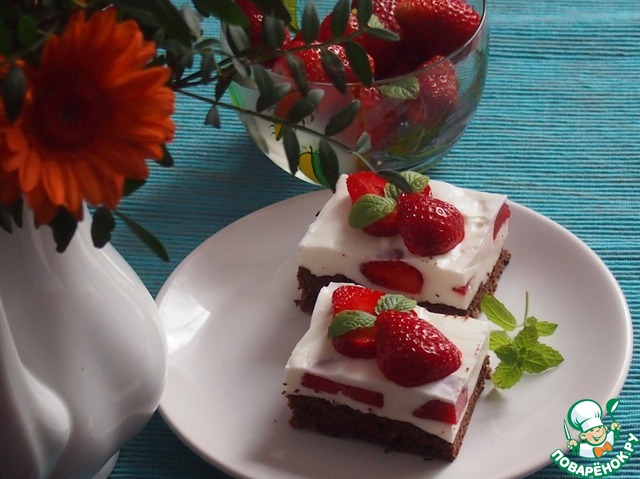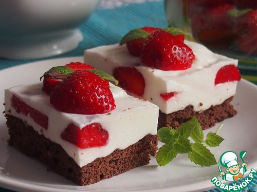 Но разрежьте его на пирожные, украсьте каждое кусочками клубники и листочками мяты и вы увидите, какая красота у вас получилась!