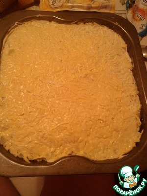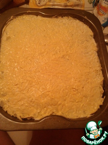 Потом снова лук, майонез, картофель, майонез и напоследок тёртый сыр и майонез