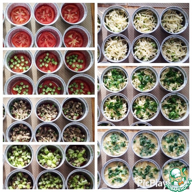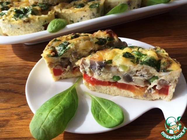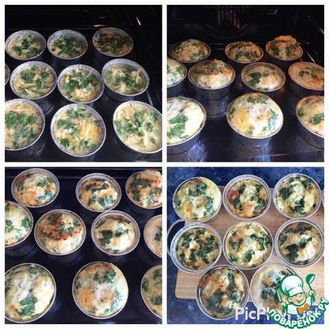 Отправляем формы в разогретую до 180°C духовку на 20 минут. Выпекаем омлет, не забывая следить за своей духовкой.