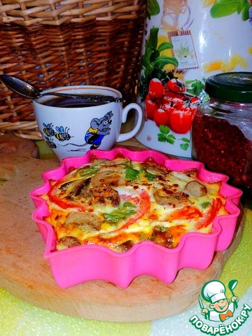 Все сложнее и сложнее удивить рецептами и блюдами, особенно если балуешь своих домочадцев. Однако кормить семью надо каждый день, пытаясь привлечь внимание даже самых маленьких. Поэтому сегодня у меня обычный омлет к завтраку, но порционная подача. Начинка может быть самой разнообразной в зависимости от вашего вкуса и предпочтений. Можно с добавлением мяса, можно без. Можно с консервированными грибами, а можно со свежими. В общем фантазируйте и семья будет накормлена. Летом это легко, когда есть в наличие свежие овощи, которые придают блюду не только замечательный вкус, но и веселую цветовую гамму. Приготовить омлет легко и просто, как в домашних условиях, так и на даче.
