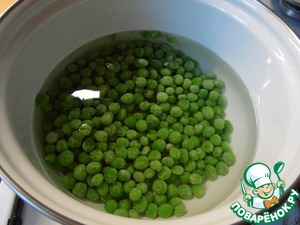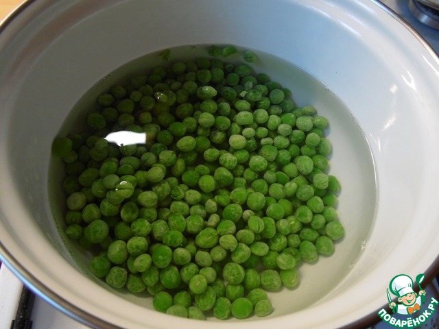 Зеленый горошек бланшировать в кипящей подсоленной воде 3-4 минуты.
