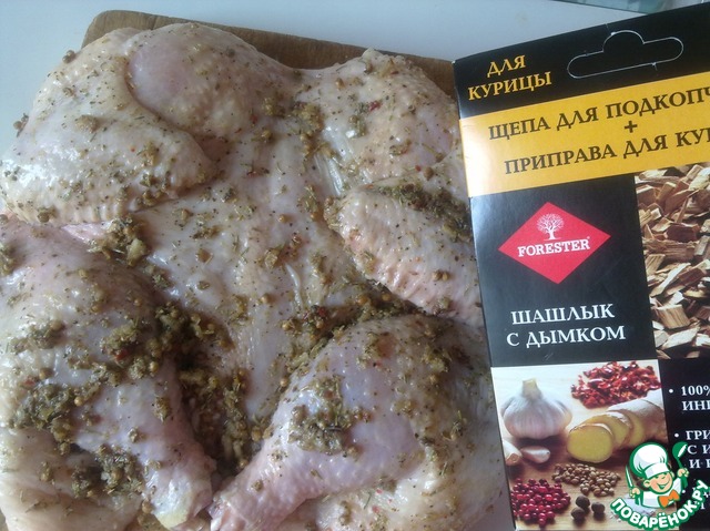 Переложите цыпленка в пакет для маринования от "Forester" и убирате в холодильник на 1 час. За это время цыпленок пропитаются вкусами и ароматами от маринада "Forester". Затем начните разжигать мангал или гриль.