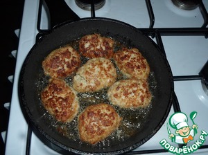 Формируем котлеты, обжариваем на раскаленной с растительным маслом сковороде до зарумянивания с 2-х сторон.