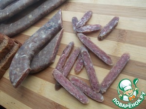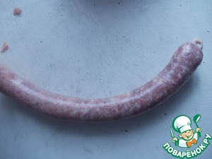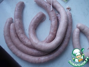 Кишки нужно почистить хорошо и замочить в соленой воде не надолго. У меня свиные, но в рецепте указано, что нужно брать говяжьи, тогда колбаса получится более толстая, не такая тонкая как у меня. Вы решайте сами, как вам больше нравится.