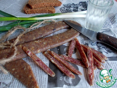 Вялилась она у меня чуть больше месяца, если использовать кишки говяжьи, тогда дольше. Луканка готова к употреблению, когда становится полностью твердой. Хранить ее лучше в прохладном месте. Я подаю ее как закуску или добавляю в летние, овощные салаты.