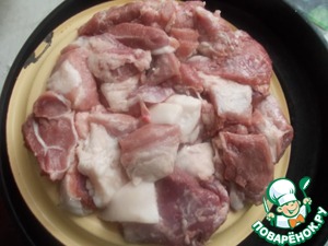 Выкладываем в ряд мясо на крышку и отправлем в холодильник. Нам это нужно, чтобы лишний сок стекал, но сито не подойдет, так как сок там стекает намного быстрее.