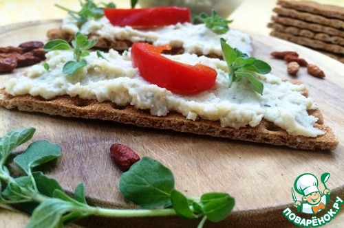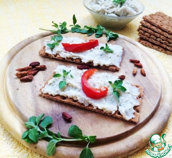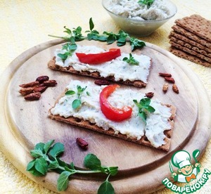 Я люблю форшмак на хлебцах, а сверху посыпаю орешками, в данном варианте с арахисом. Кто-то любит с теплыми гренками, натертыми чесночком, фантазируйте :)