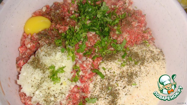 Приготовьте фарш: мясо прокрутите, добавьте прокрученный мякиш хлеба, смоченный в молоке, добавьте яйца, зелень, соль, перец, приправу по вкусу.