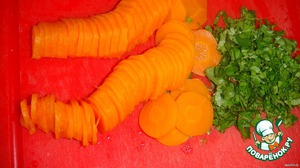 Морковь отварите и нарежьте кольцами, измельчите зелень.