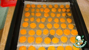 На противень положите пекарскую бумагу, намажьте маслом и выложите морковь рядами.
