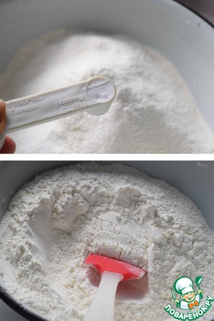 Вот такой мерный стакан я использовала (объем 230 мл). Набираю муку и крахмал без горки.