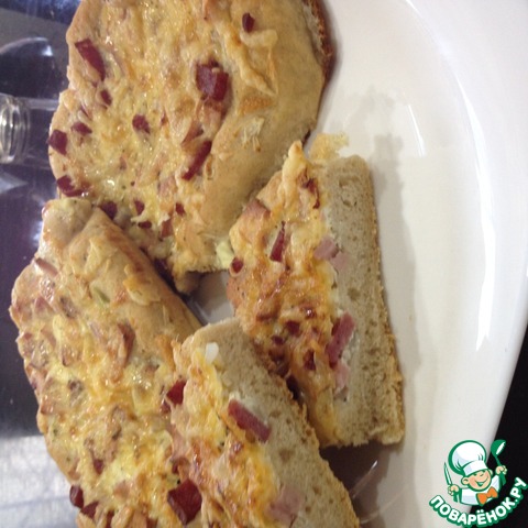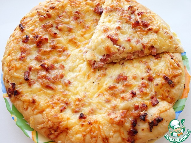Сыром посыпают не всегда, часто кладут лук и колбасу (шпек) и все. У меня еще оставалась заливка и я равномерно разлила ее поверх начинки.