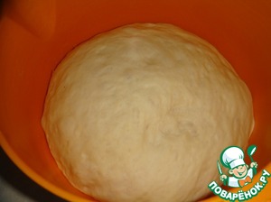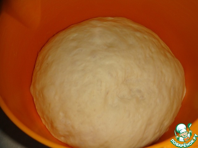 Замесить мягкое тесто. Смазать миску растительным маслом и выложить в нее тесто. Ставим на расстойку на 1 час.