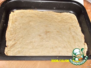 Тесто делим на 3 части, каждую часть раскатать по форме и печь по 10-12 мин. при t=250*. Форму предварительно ополоснуть холодной водой и вилкой проткнуть в нескольких местах в тесте.